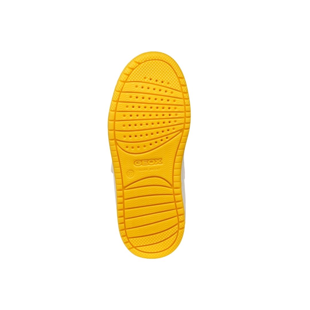 Blanche avec une joyeuse touche de jaune, cette chaussure Geox au look rétro sport est parfaite pour le printemps et l'été. On craque pour son look à la fois moderne et vintage. Une valeur sûre pour les parents qui cherchent une espadrille blanche polyvalente, confortable et stylée.