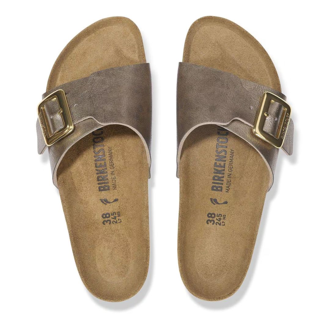 Cette sandale Birkenstock dans des tons taupe et cuivre apporte élégance et minimalisme à vos tenues. On aime sa boucle dorée qui a du caractère et ce coté luxueux. Cette sandale a définitivement un effet WOW. Facile à enfiler, elle plaira autant aux adolescentes qu'aux mamans! Coup de coeur pour sa bride unique et ajustable qui couvre bien le pied.