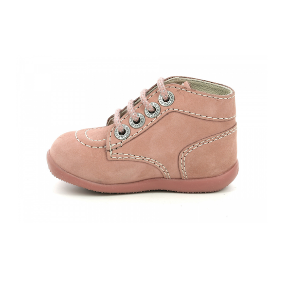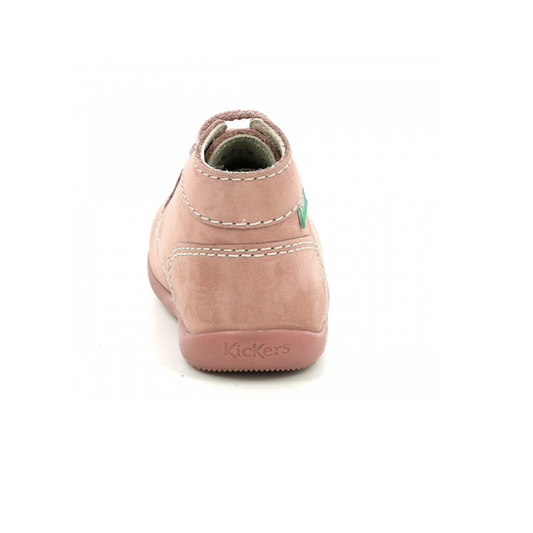 Chaussure Kickers pour les premiers pas de bébé. Légère et souple. Dans un beau rose doux. Look vintage et minimaliste.
